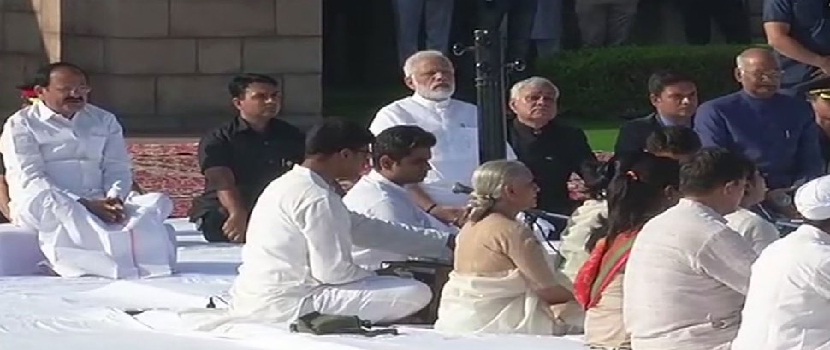| राष्ट्रपिता महात्मा गांधी की 148वीं जयंती के अवसर पर आज राष्ट्रपति, उप राष्ट्रपति और प्रधानमंत्री ने बापू को नमन किया| पीएम मोदी ने राजघाट पहुंचकर पीएम मोदी राष्ट्रपिता को श्रद्धांजलि दी| पीएम मोदी ने राजघाट पर होने वाली प्रार्थना सभा में हिस्सा लिया| उपराष्ट्रपति वेंकैया नायडू ने भी राजघाट पहुंचकर बापू को श्रद्धांजलि अर्पित की| राष्ट्रपति रामनाथ कोविंद ने भी बापू की समाधि राजघाट पहुंचकर राष्ट्रपिता को श्रद्धा सुमन अर्पित किए|