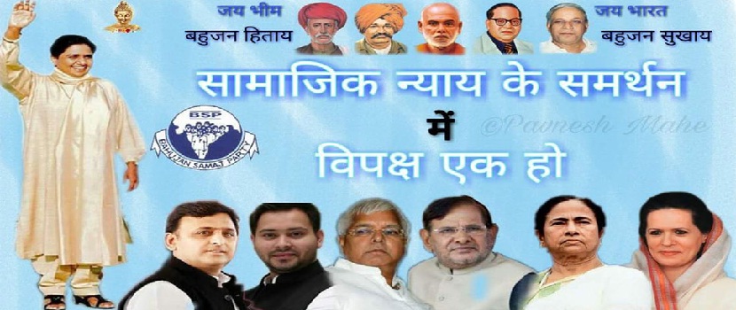 केंद्र की मोदी सरकार के खिलाफ विपक्षी एकता की अनूठी मिसाल पेश करता बीएसपी उत्तर प्रदेश का एक पोस्टर सामने आया है। बीएसपी सुप्रीमों मायावती के राज्यसभा से इस्तीफा देने के बाद से ये कयास लगाए जा रहे थे कि मायावती को आरजेडी अपने कोटे से राज्यसभा भेज सकती है। लेकिन मायावती ने कभी खुलकर इस बारे मेें कुछ भी नहीं कहा।